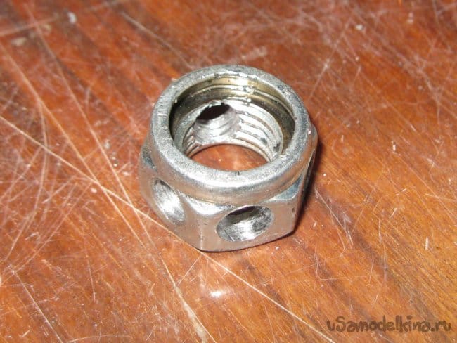 Центральная гайка готова. Мне досталась с пластиковым гровером: его нужно непременно выковырять.