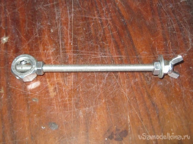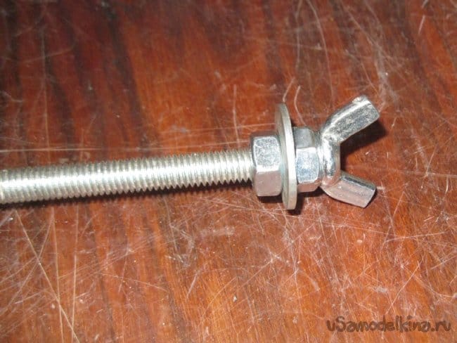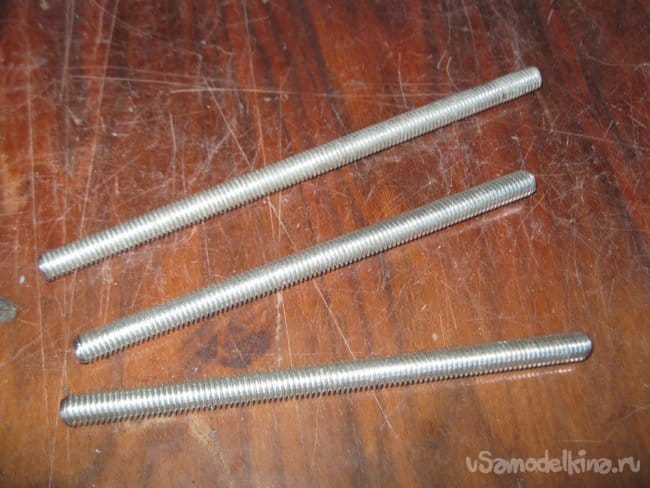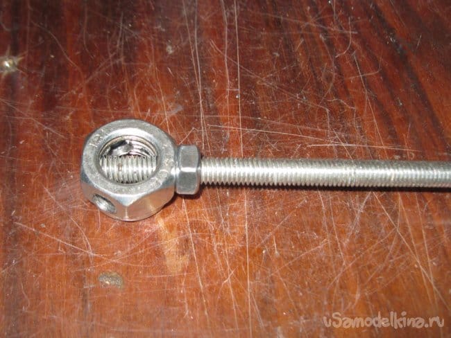 Собираем. Более длинный стержень закручиваем насквозь и контрим с одной стороны гайкой.
