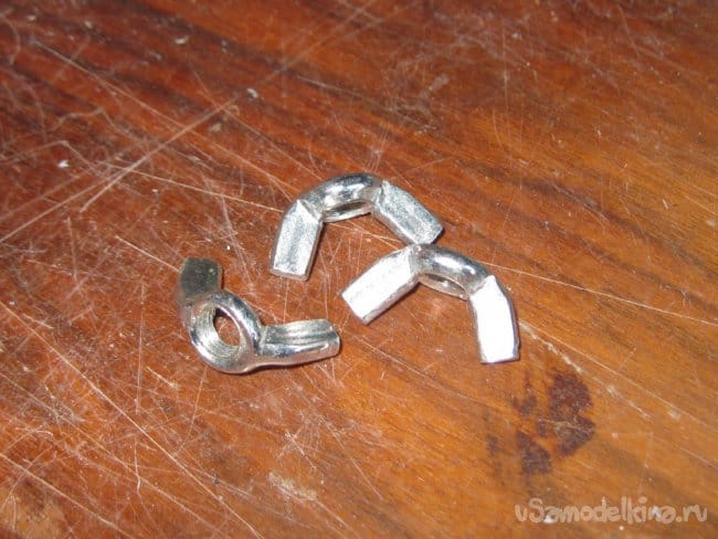 С другого конца стержня делаем «бутерброд»: гайку, шайбу, снова гайку и барашек, для единообразия с другими лучами рассеивателя. И всё, естественно, затягиваем.