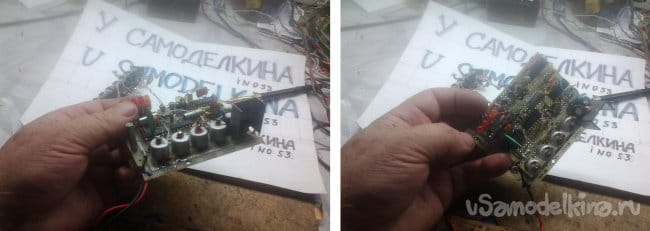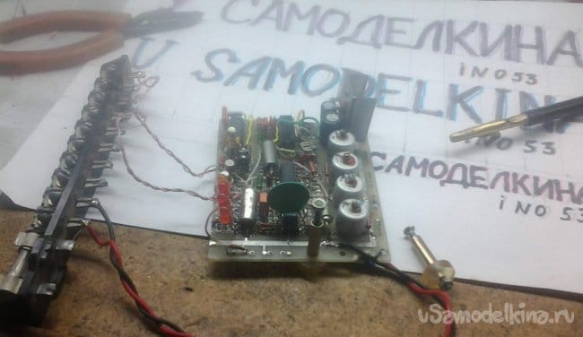 Хорошо видны круглые подстроечники схемы компаратора, стойки крепления и громадный по сравнению с платой клеммник.