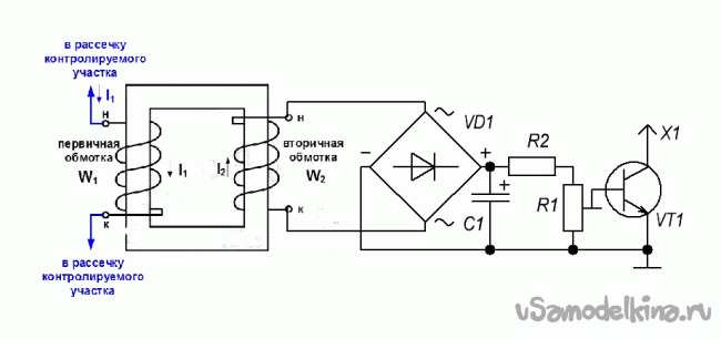 Когда во 2-м режиме АКБ набирает полный заряд, т.е. напряжение на нем достигает 14,2…14,4 В, происходит переключение в 3-й режим, но только в том случае, если ток потребления в этот момент не превышает 1…2 А (может регулироваться). Это определяется датчиком на основе самодельного трансформатора тока, на общей схеме не показан. Управление происходит через неиспользованный транзистор VТ1 на схеме узла анализа, он же и на этой схеме.