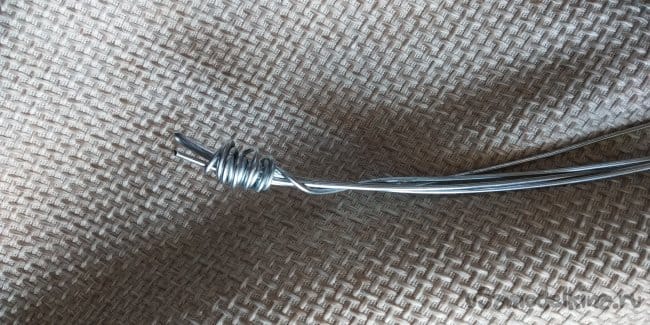 Для начала отмотаем приличное количество проволоки, выпрямим ее и сложим вчетверо. Учитывая невероятную пружинистость проволоки на это уйдет довольно много времени. Далее я решил одним длинным концом смотать проволочки вместе. (Что было ошибкой).