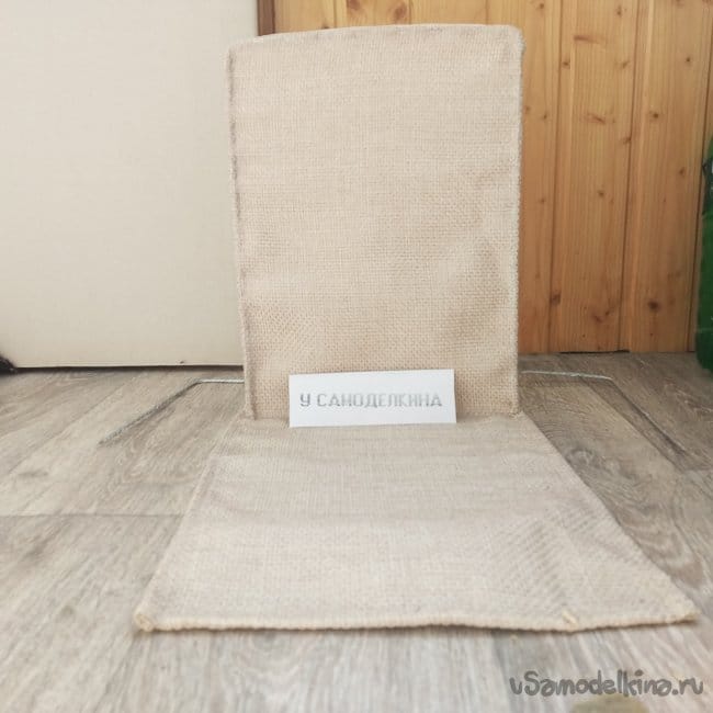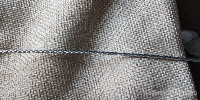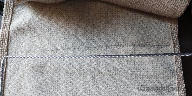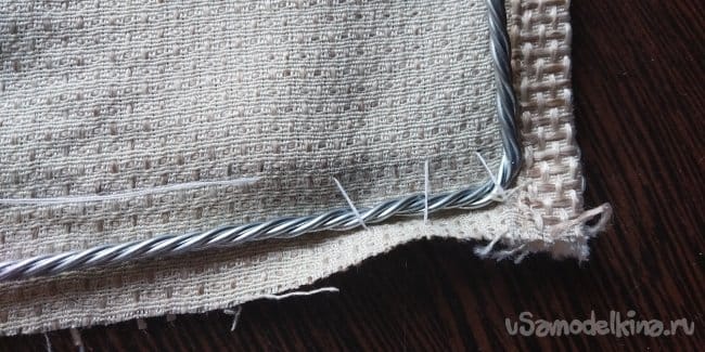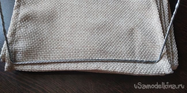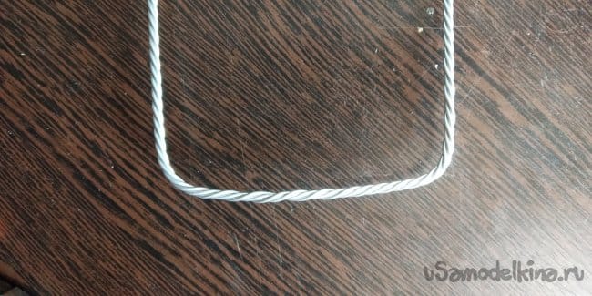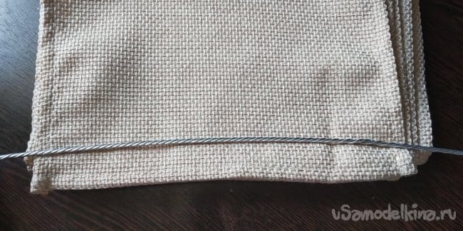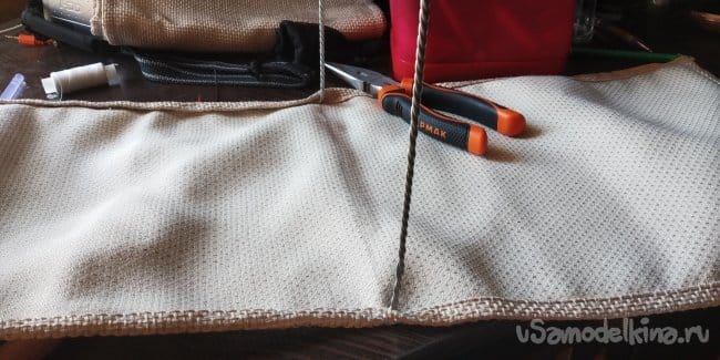Далее я приложил трос серединой к ткани, чтобы сделать заготовки ножек. Делал я их немного меньше ткани, потому что я потом буду обшивать каркас.