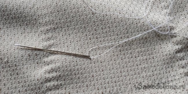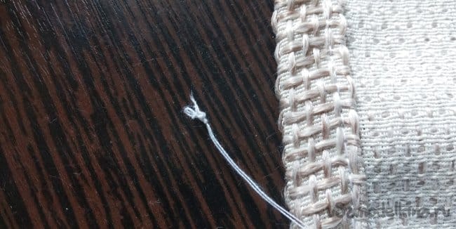 Переходим к шитью. Тут все просто: вдеть нитку в иголку и завязать на конце узелок.