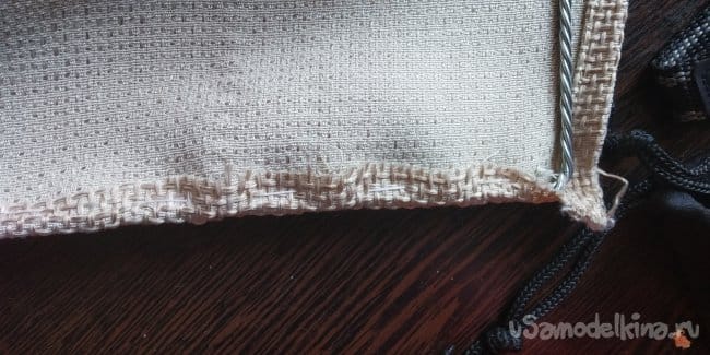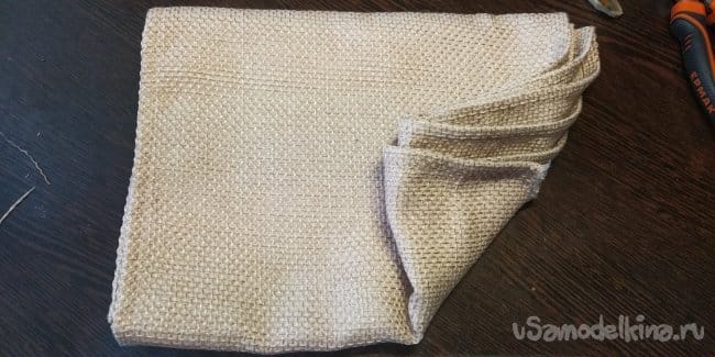 (Кстати, уголки ткани я сверху не прошивал, потому что я их загнул уже когда шил другие стороны.)