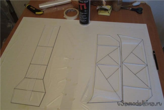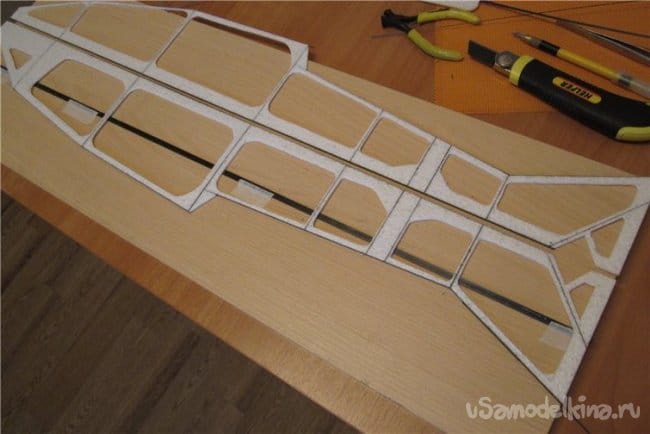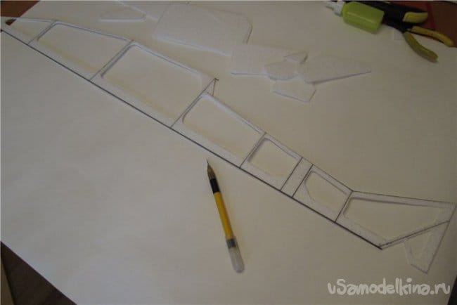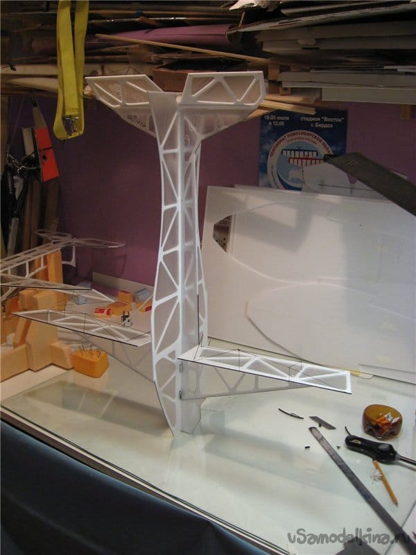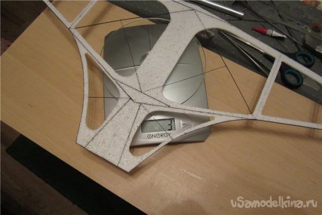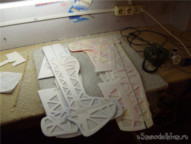 Поскольку от веса модели напрямую зависит качеств полета и выполнение фигур комплекса.Первоначально конструировал зальные самолеты используя фрезеровку потолочной плитки.