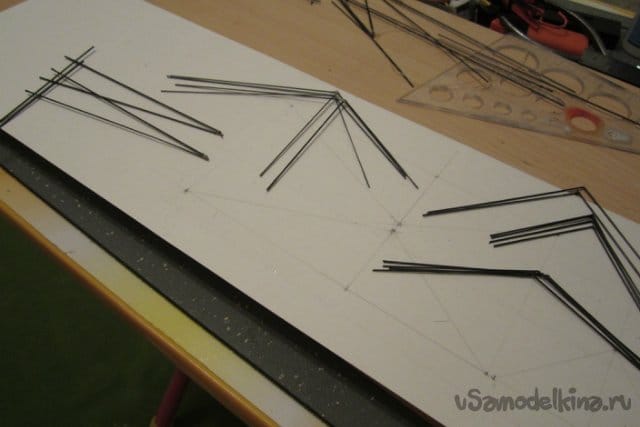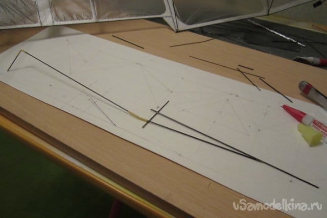 Некоторые элементы усиления изготовляю из карбоновых прутиков 0.5.