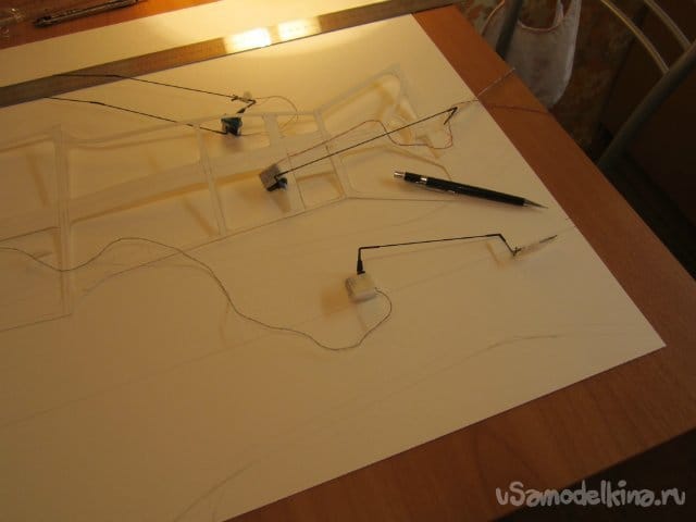 Шасси из прутка 07, не держатся, разъезжаются лапки. Укрепил растяжками.