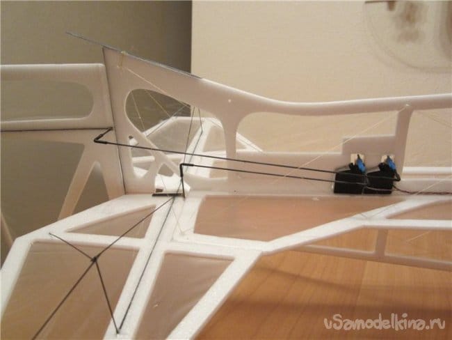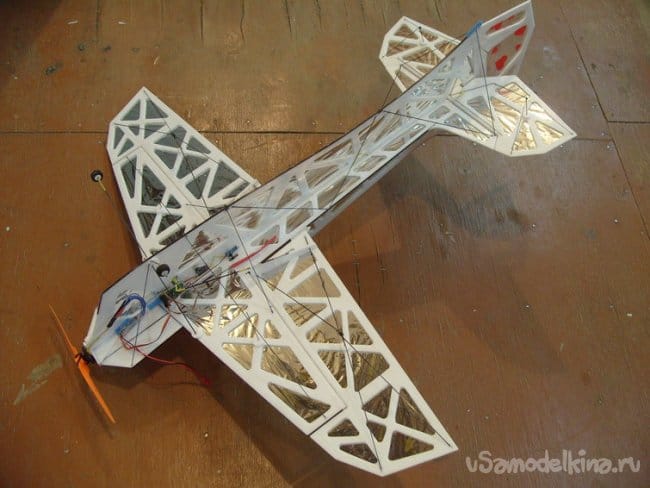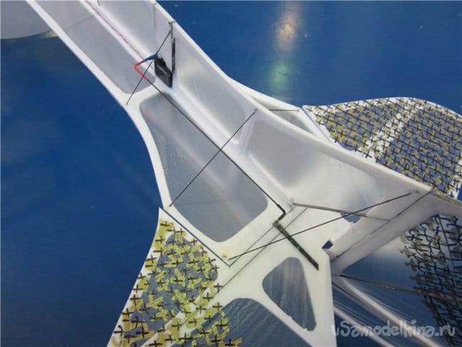 Убрать два сервопривода на элероны, хотя и легкие, но два. Одного с усилием в 200 грамм вполне должно хватить.
