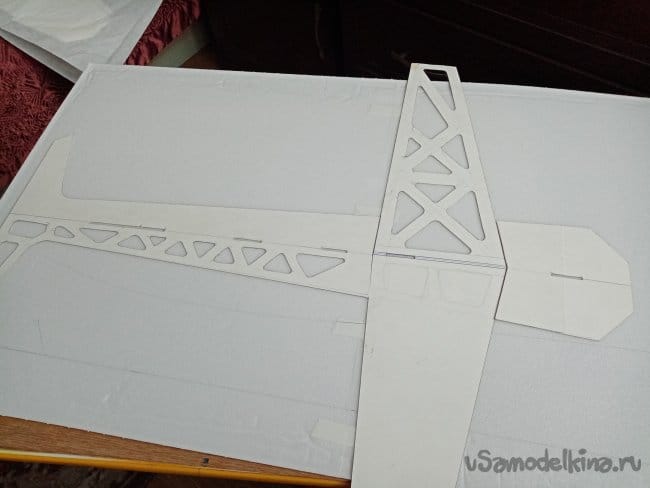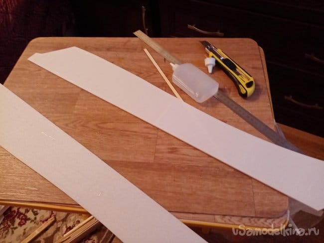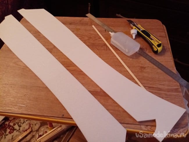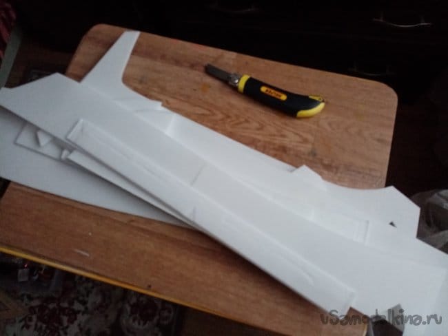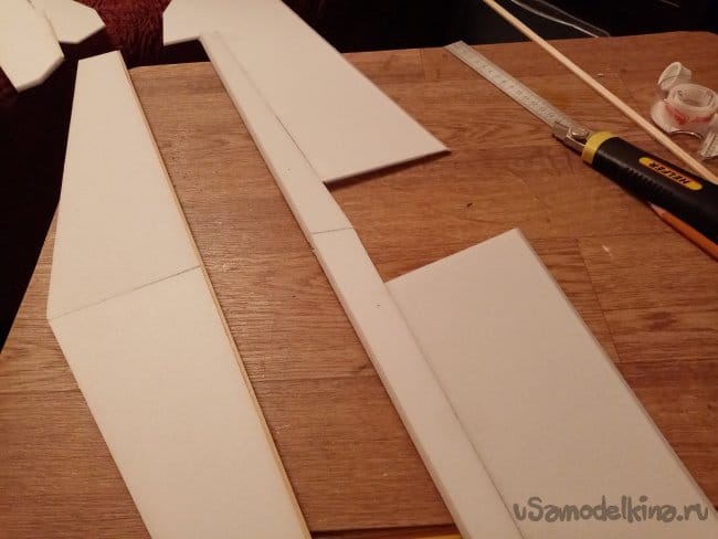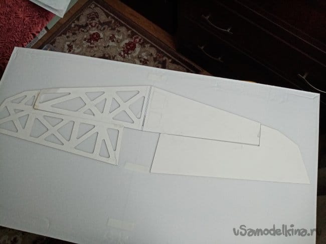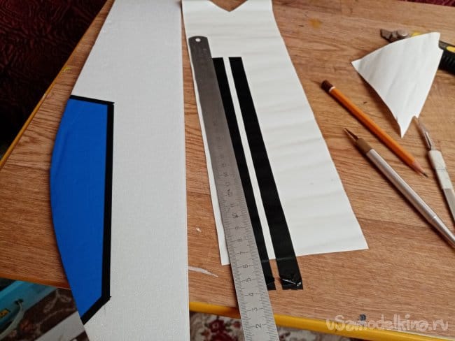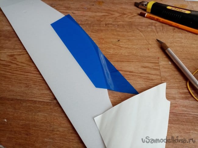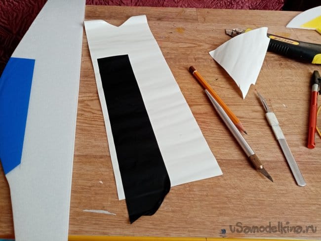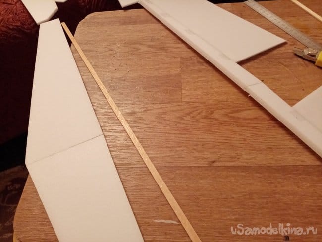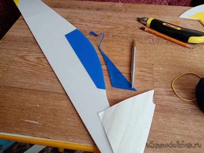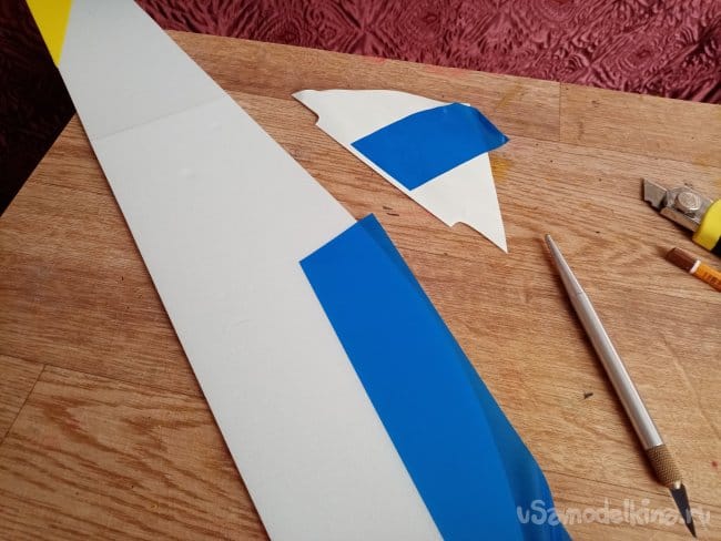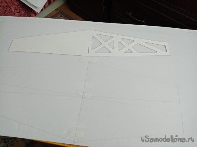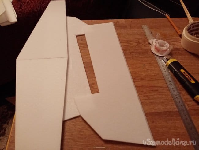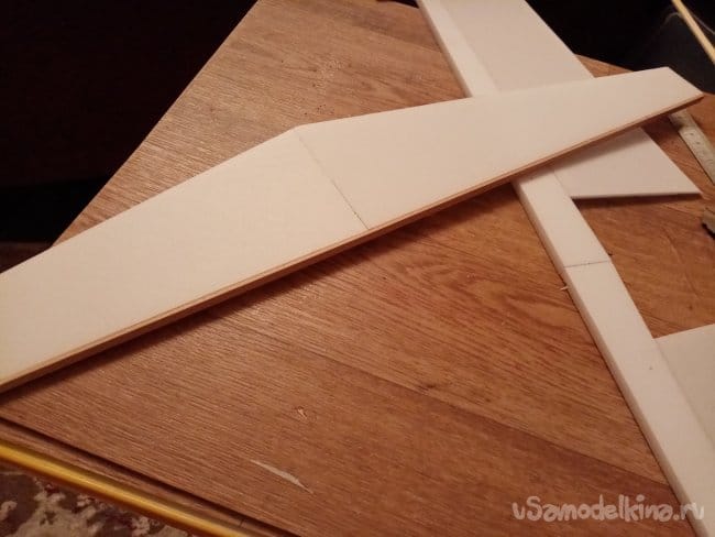 Из остатков потолочки от других проектов размечаю и вырезаю громадные элероны.