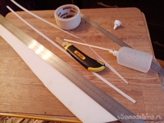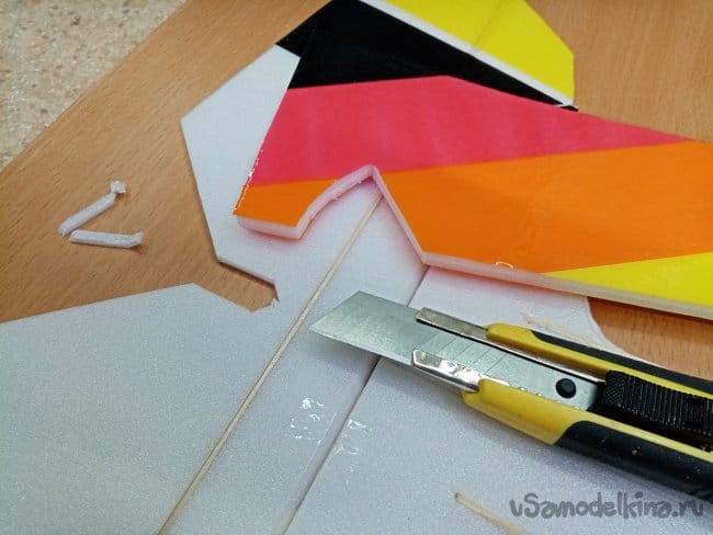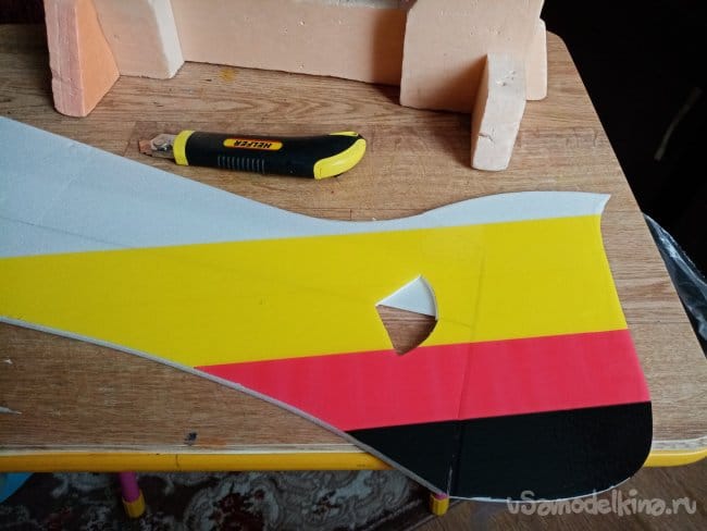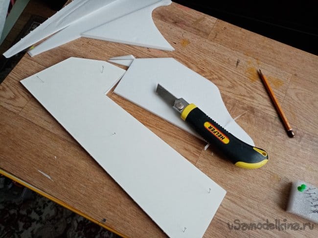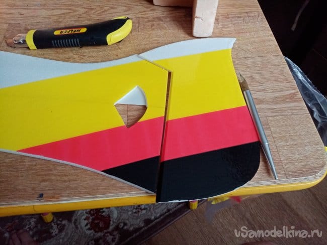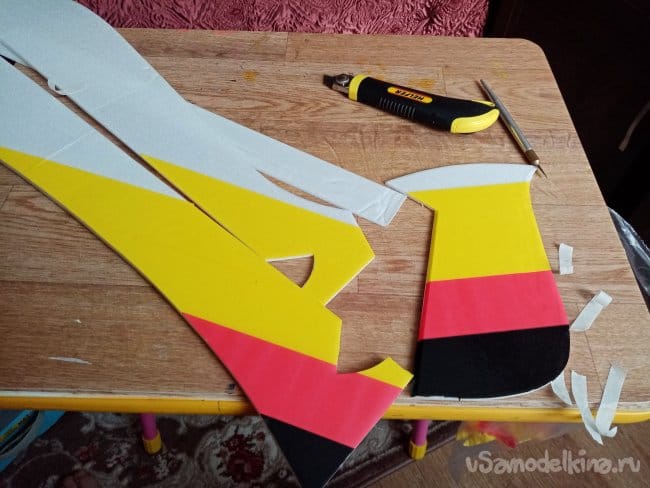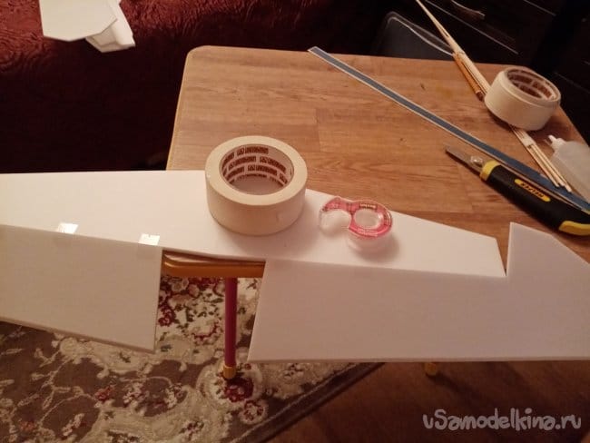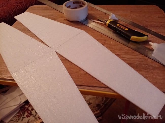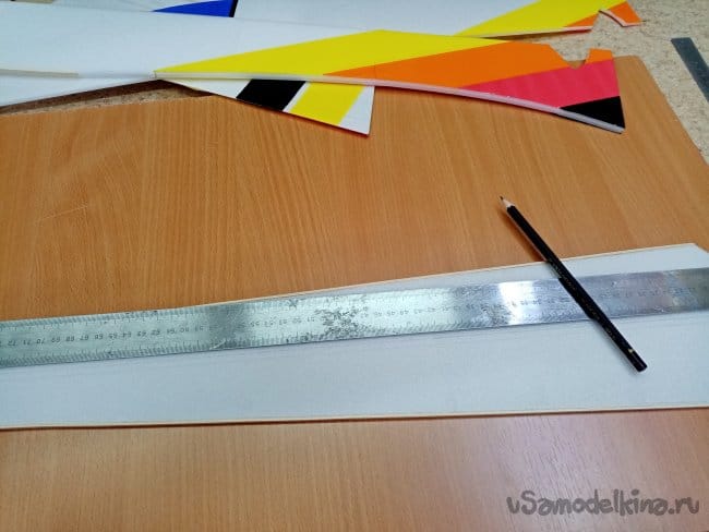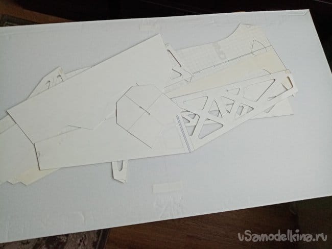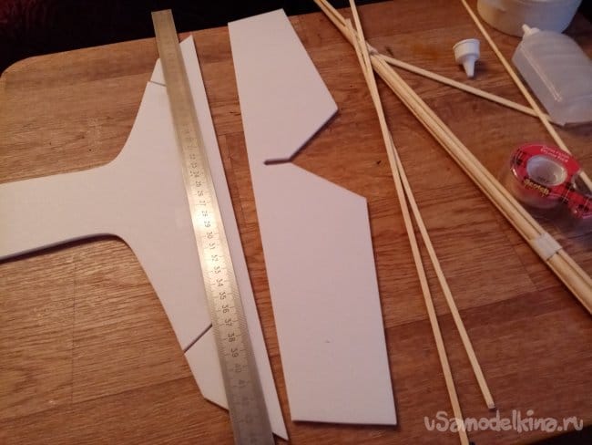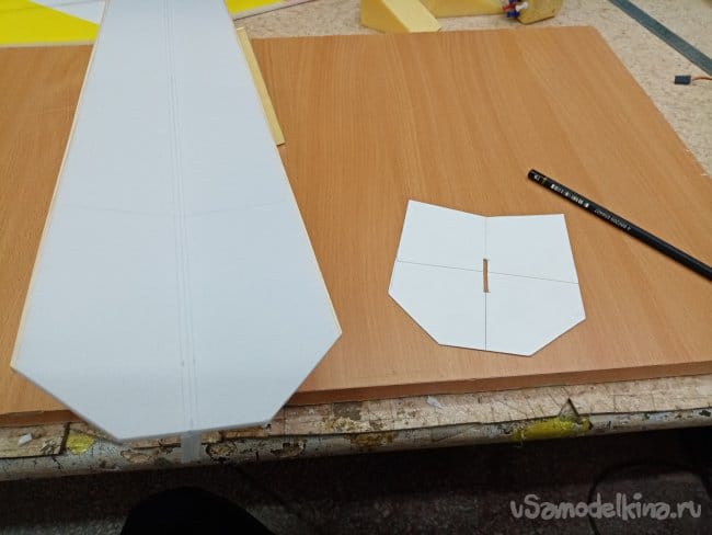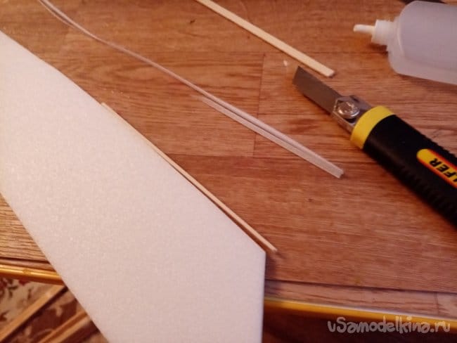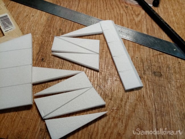 Из остатков потолочки от других проектов размечаю и вырезаю громадные элероны.