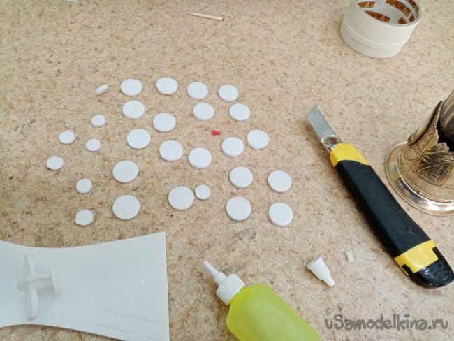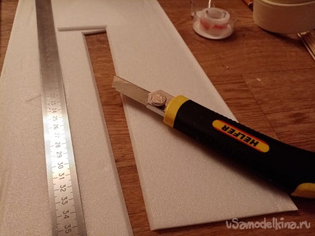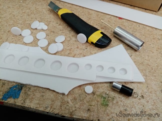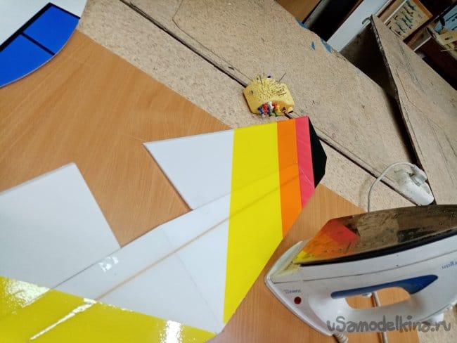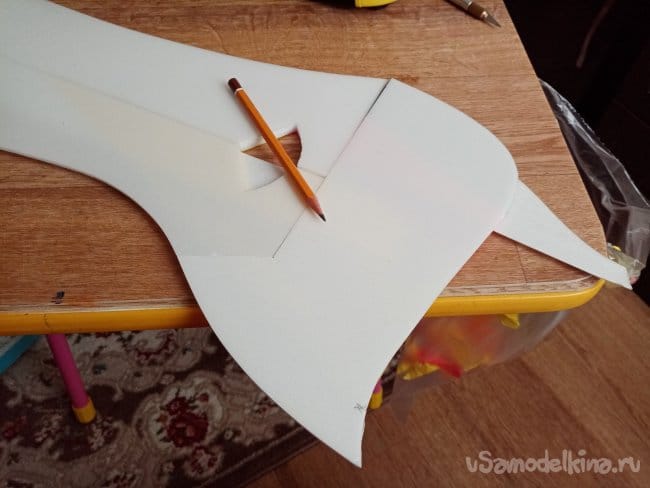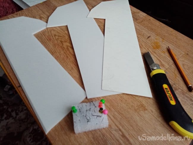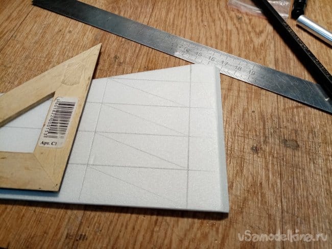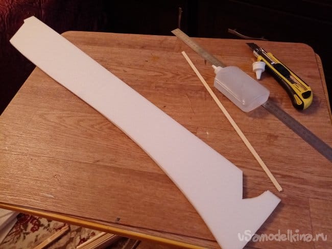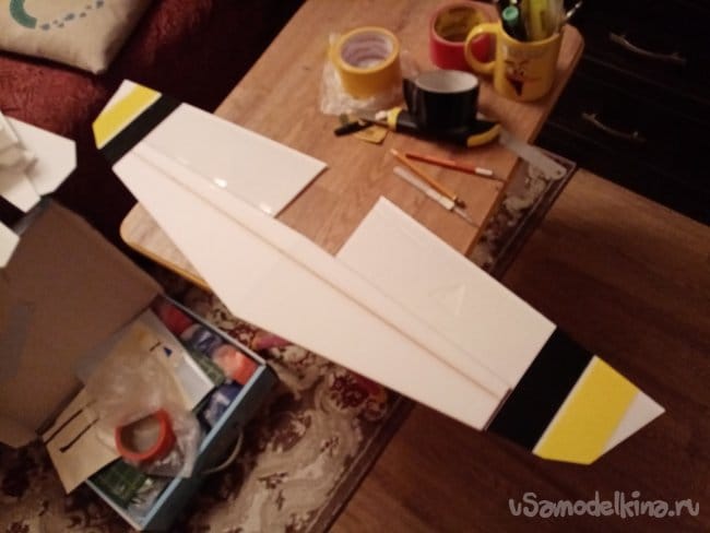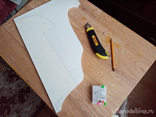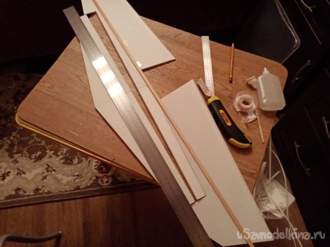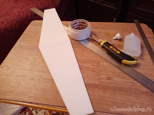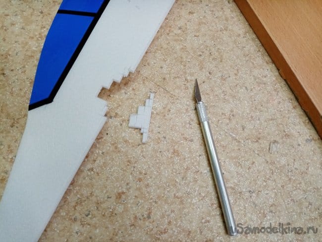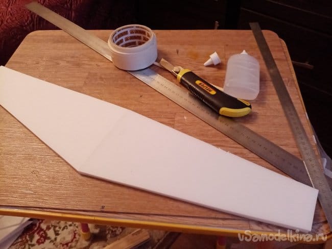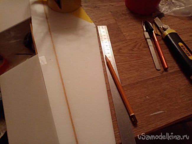 Из остатков потолочки от других проектов размечаю и вырезаю громадные элероны.