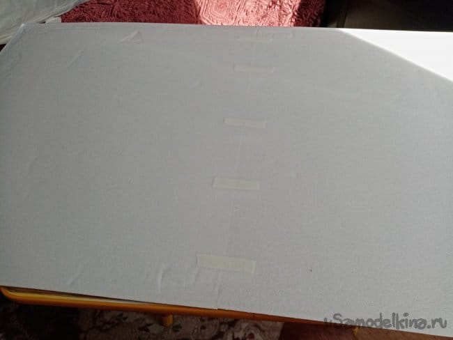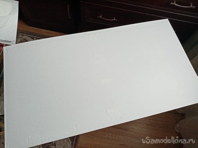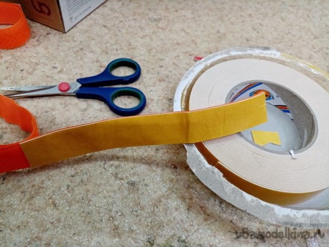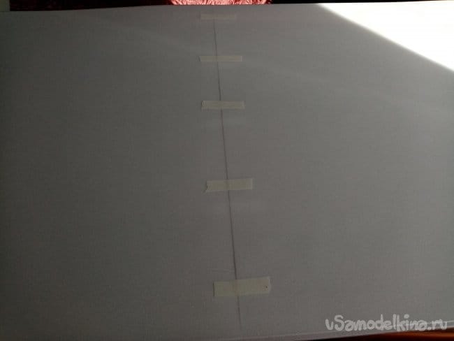 Приклеиваю усиления, может не сильно ровно, но затем прикладываю мотораму и нажимаю. Все ровно теперь, фиксирую мотораму скотчем. Ставлю на стол, стоит, не падает, значит все хорошо.