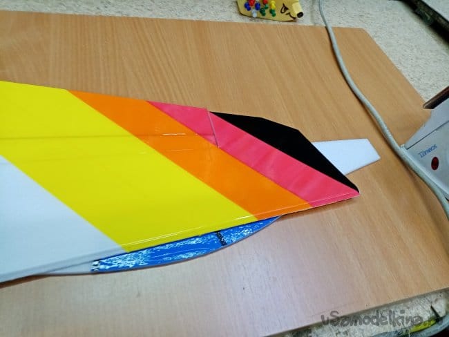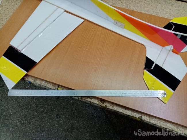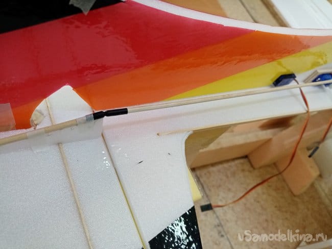 Немного модернизации, усилил полоской карбона ноль пять на три миллиметра элероны по заднему краю.