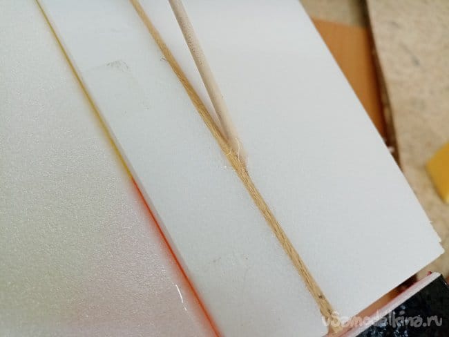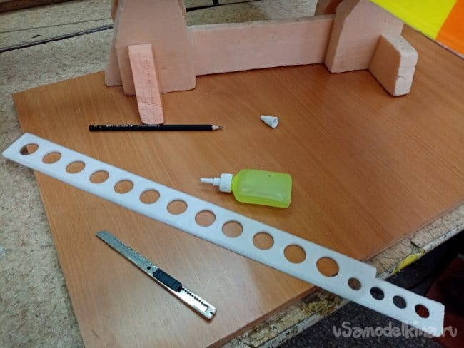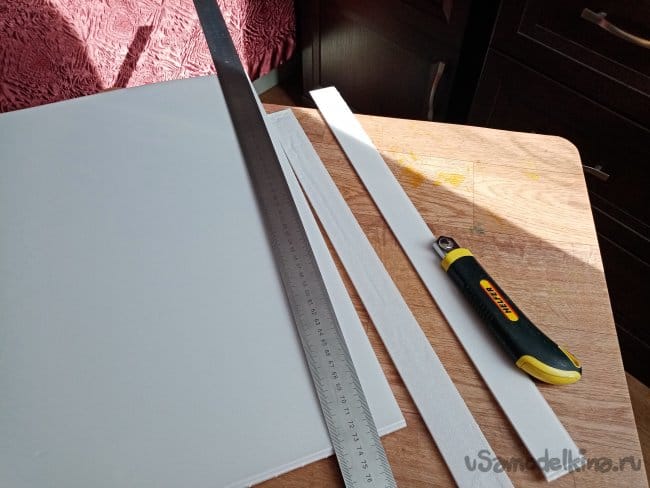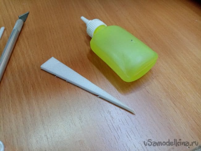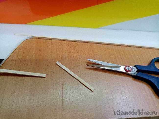 Приклеиваю усиление из рейки пять на два миллиметра, нужную длину просто отрезаю ножницами.