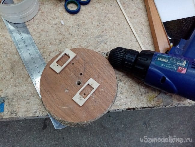 Начинаю монтировать оборудование. Сверлю отверстия для шурупов фиксации мотора.