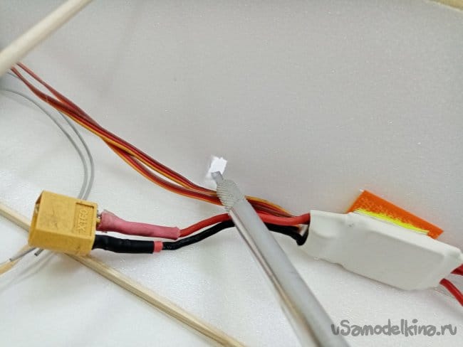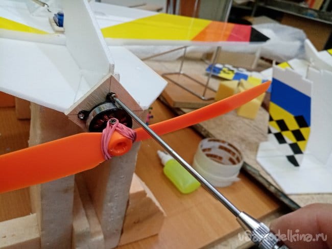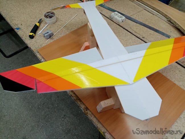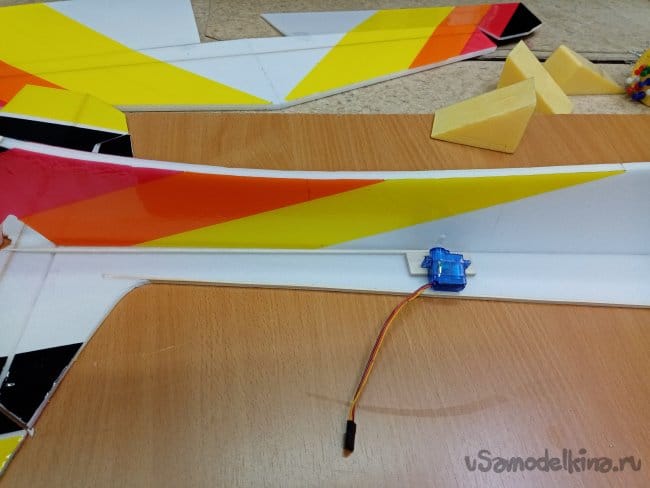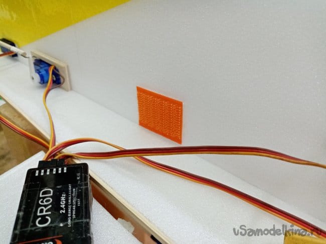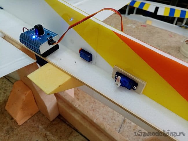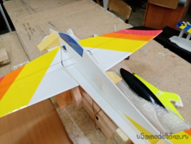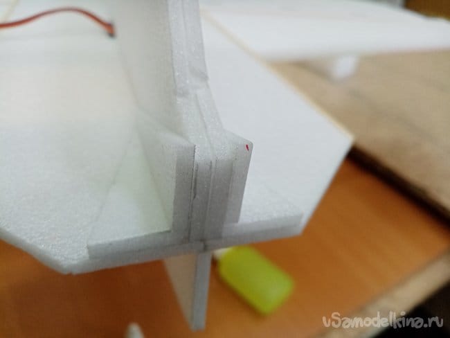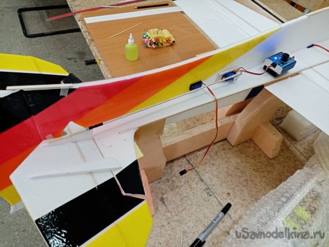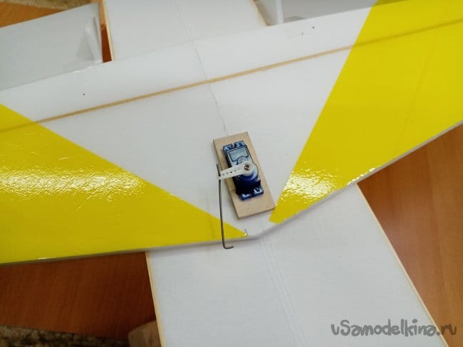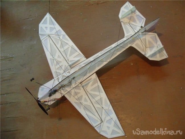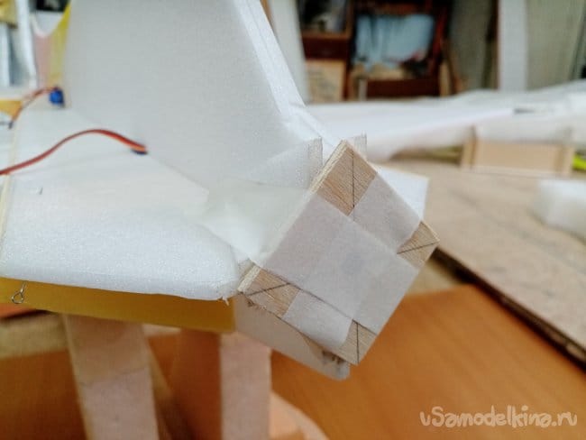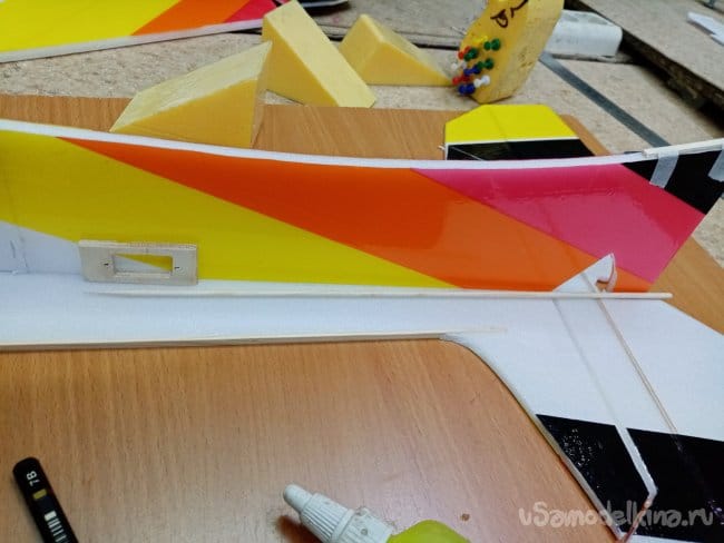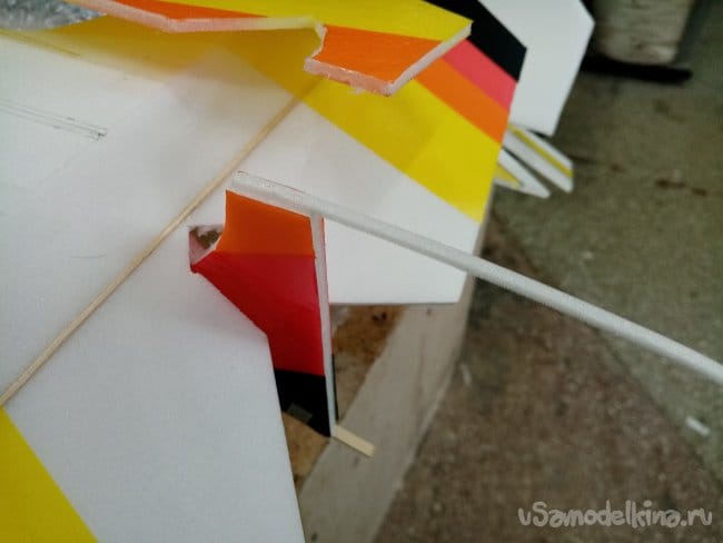 Крылья и все рулевые поверхности тоже укрепляю растяжками с двух сторон, для жескости.