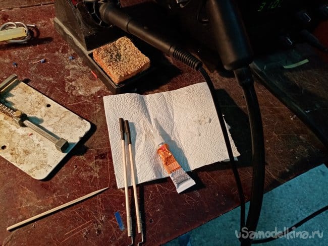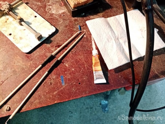 Снимаю тяги с качалки, помощью термоусадки циакрина изготовляю шарнир.