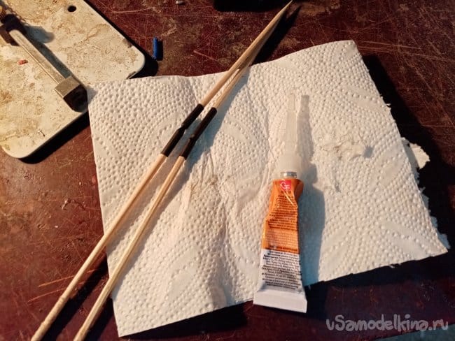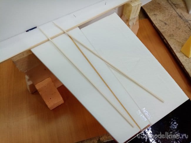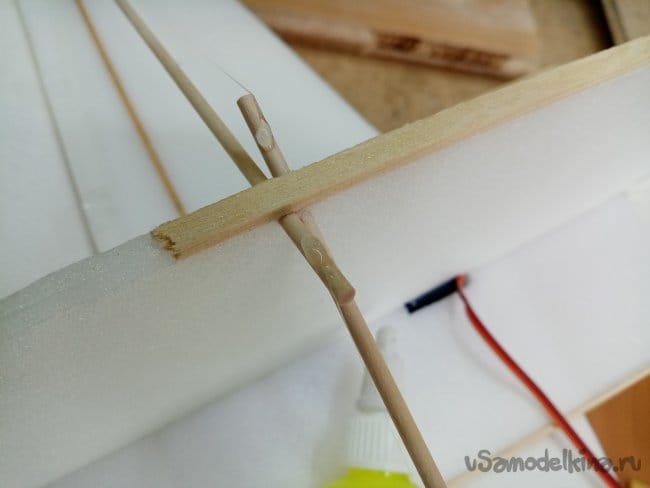 Распорки в крыльев устанавливаю как можно ближе к рейкам, все склеивается вместе придавая дополнительную прочность.