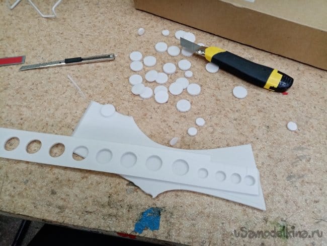 Оклеиваю с двух сторон, прорезаю отверстия и разрезаю детали.