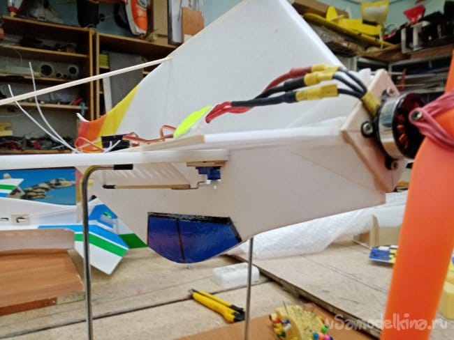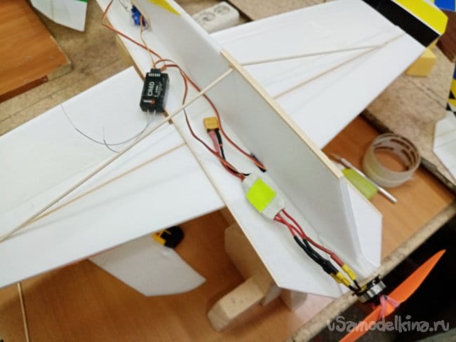 Мотор на месте, предварительно размещаю, регулятор и приемник, а так-же аккумулятор. Двигая оборудование добиваюсь нормального центра тяжести.
