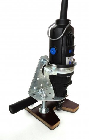 Для удобства работы с нежным, боящимся царапин материалом, на опорную плиту с помощью двустороннего скотча наклеена подошва из относительно мягкого пластика толщиной 3мм.