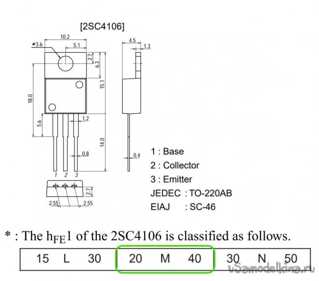 Также необходимо найти сопротивление R1, что будет зависеть от транзистора, мой C4106 имеет коэффициент передачи по току: