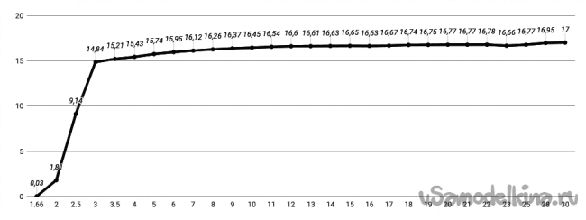 Да, стабильность этой схемы не совершенна, но изменение тока даже при таком значительном увеличении питающего напряжения незначительно, вот график тестирования: