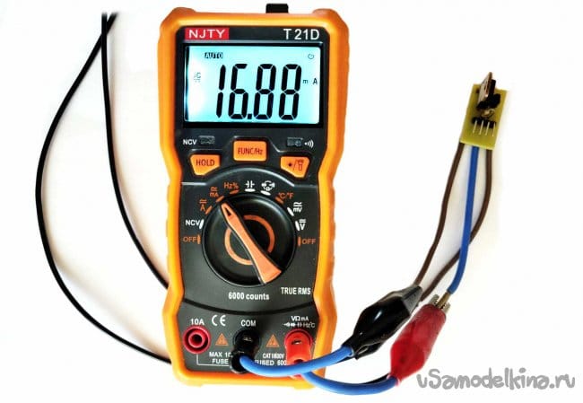 Подключаем амперметр напрямую к выходу (питание 10 В):
