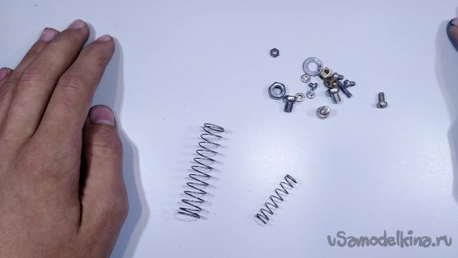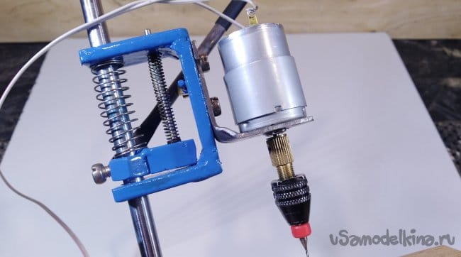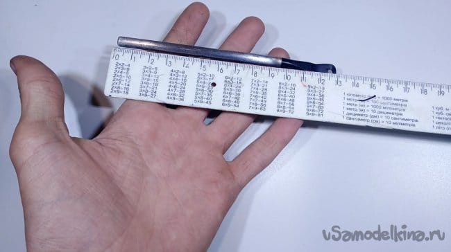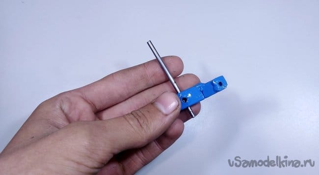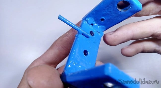 Рукоятка. Сделана из проволоки 5 мм, которую согнул, сплющил на конце и высверлил отверстие под шпильку М3. Данная проволока была взята от потолка автомобиля ваз 2107.