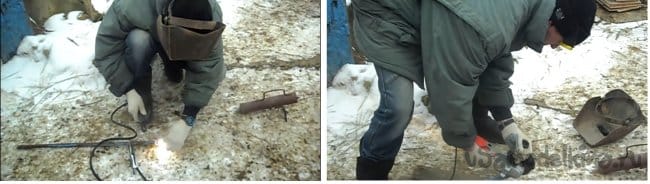 Авт приварил болты для подключения выводного провода, заострил штыри путем обрезки их болгаркой под углом.