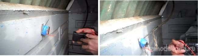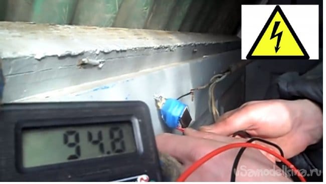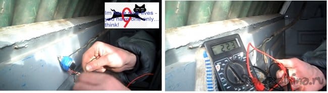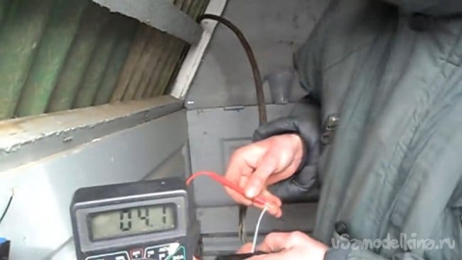 Напряжение есть, пляшет в районе 4 В. Неплохо, я измерил у себя, всего 1,3…1,5 В. А вот дальше начинается такое, за что проф. электриков отправляют на переаттестацию.