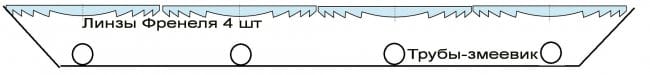 Схема теплового коллектора. Труба-змеевик в фокусе ЛФ.