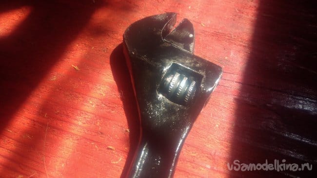 Чтобы ржавчина сошла с металла, я примерно на день кидаю ключ в раствор лимонной кислоты. Кто будет делать - возьмите уксус 95% он справится быстрее, но работайте в водонепроницаемых перчатках. Я засыпал 120 грамм лимонки на 900 мл воды. Вот что стало с ключом