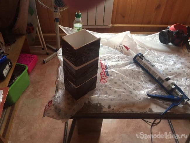 При помощи силиконового герметика и скотча герметизируем опалубку для предотвращения утечки эпоксидной смолы.