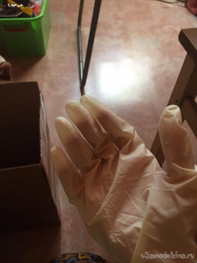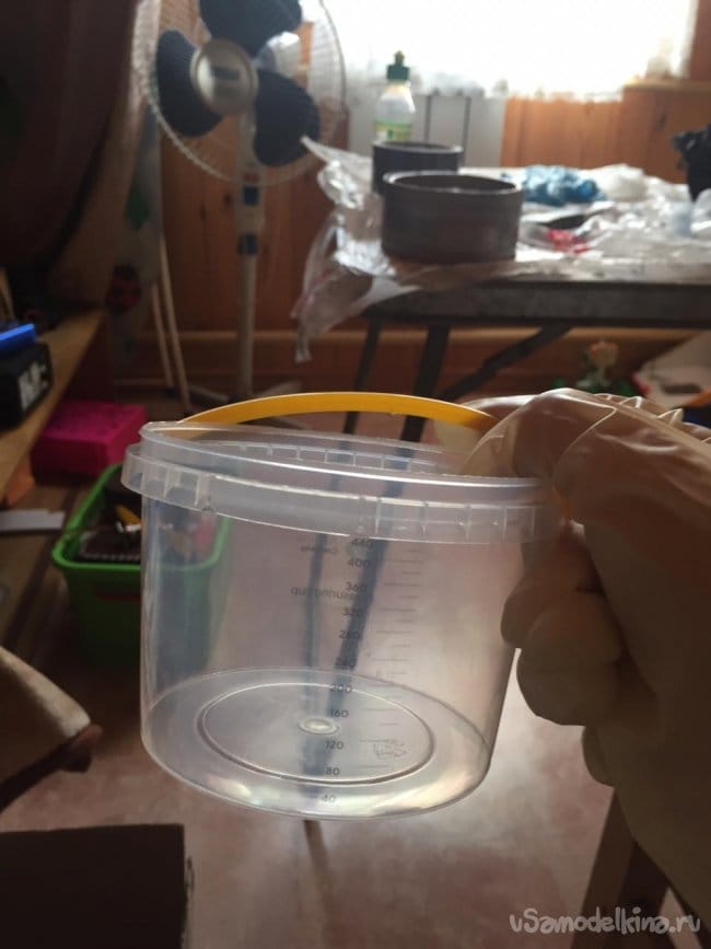 После этого я перешёл к смешиванию эпоксидной смоле, при этом надев перчатки и распиратор согласно технике безопасности.