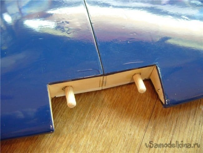 На передней кромке крыла вклеиваю штыри для фиксации в фюзеляже.