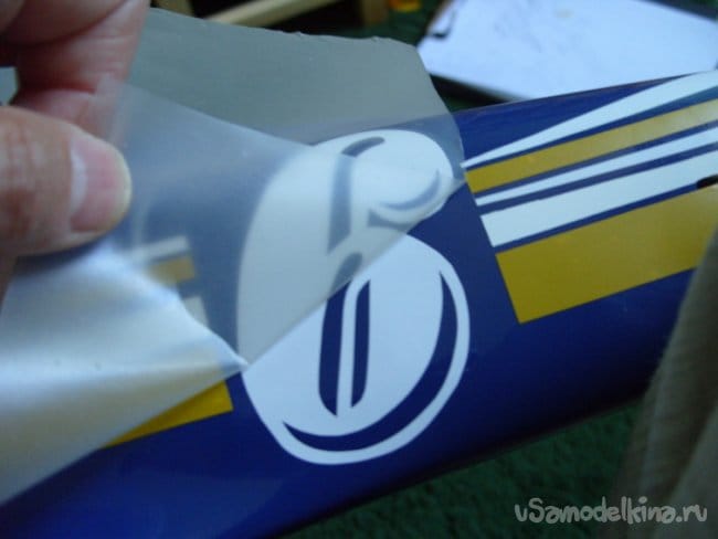 После прогонов оборудования раскрасил самолет полосками и буковками из рекламной пленки.