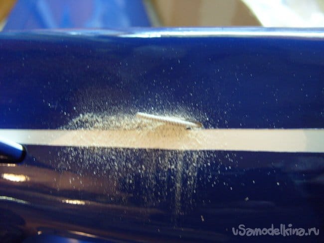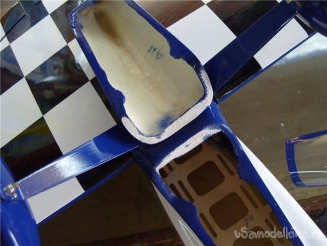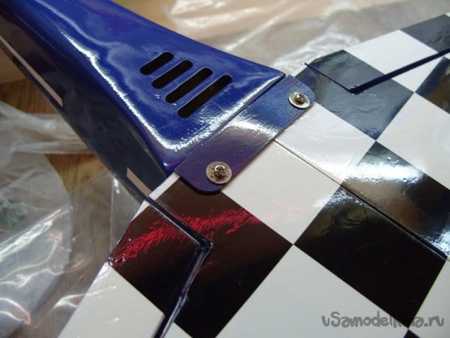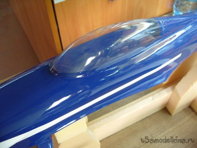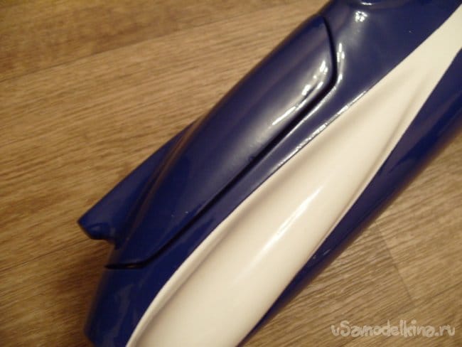 Пластиковый фюзеляж изготовлен вполне нормально, только вот в хвосте небольшие волны. Можно конечно исправить шпаклевкой и все выровнять. Нет не буду делать, так хорошо и блестит.