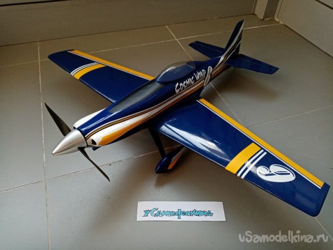 Это элегантная и стремительная модель, с высококачественным стеклопластиковым фюзеляжем и крылом, сделанным по бальзо-пленочной технологии. Все детали аккуратно вырезаны на станках с ЧПУ, что делает конструкцию планера легкой и прочной. Большая крышка батарейного отсека, крепящаяся на магнитах внизу носовой части, открывает достаточно места для выбранной вами батареи. Шасси цельнометаллическое двухстоечные со стеклопластиковыми обтекателями колес. В носовой части предусмотрена мощная система крепления для надежной фиксации 35-ти миллиметрового мотора. Cosmic Wind требует некоторой доработки, необходимо навесить качалки и органы управления, вклеить детали хвостового оперения и элероны и, конечно, установить двигатель и оборудование радиоуправления, но уже через 2-3 вечера работы Cosmic Wind выйдет на старт вашей собственной гонки Goodyear Trophy.