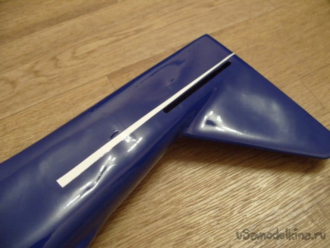 Внимание! Руль направления сначала вставляем в фюзеляж, затем навешиваем подвижные части!