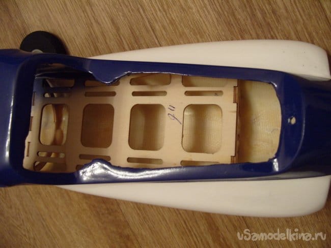 Крышка моторного отсека не слишком ровно прилегает, придется шкурить заднюю часть. Она крепится впереди штырем и сзади на довольно сильные магниты.