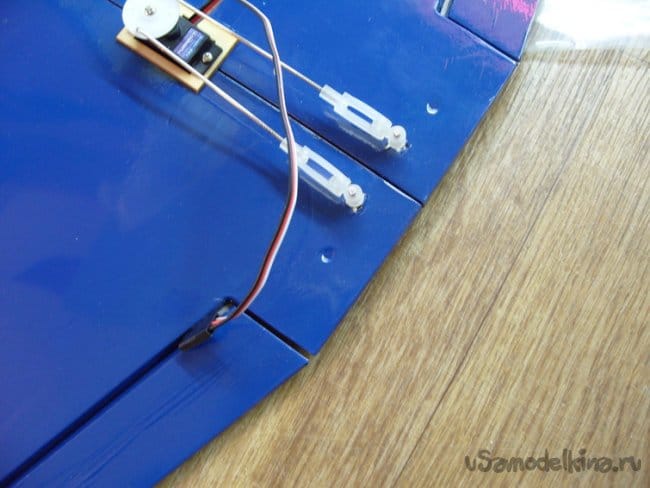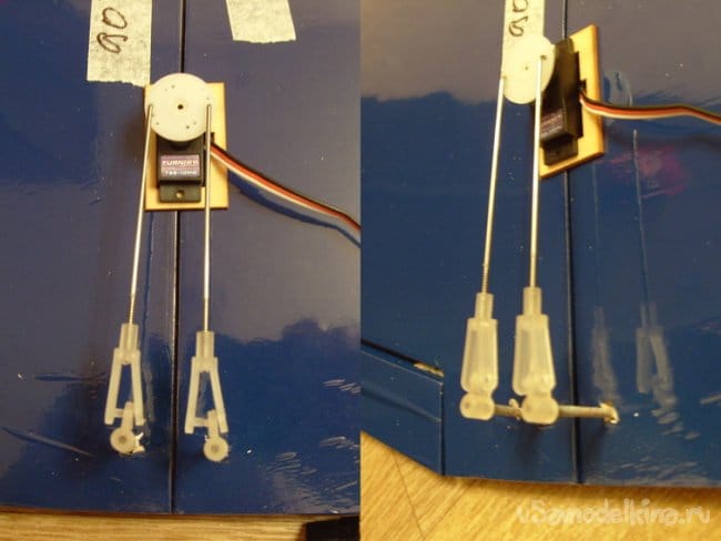 Проверяю как все работает. Нужно отрегулировать все рычаги и тяги чисто механически. Элероны должны отклоняться на равные углы.