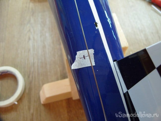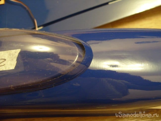 По краю фонаря проклеил полоску рекламной синей пленки, закрыл стык склейки с фюзеляжем.