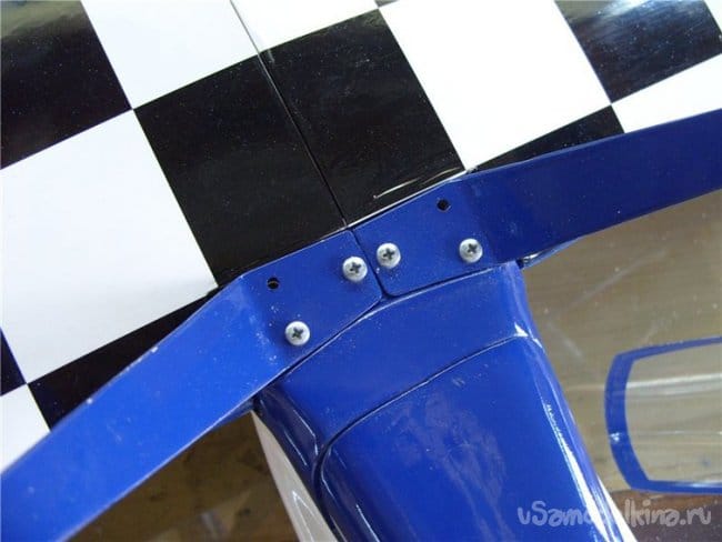 Сверлю по ним отверстия и закрепляю крыло. Все ровно и все входит, ничего не цепляется и не задевает.