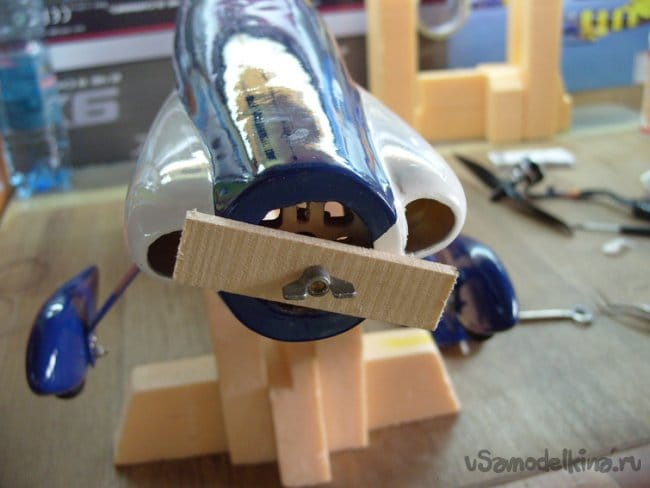 Вкручиваю болтики в фюзеляж, устанавливаю крыло и сильно прижимаю. Есть наколки!