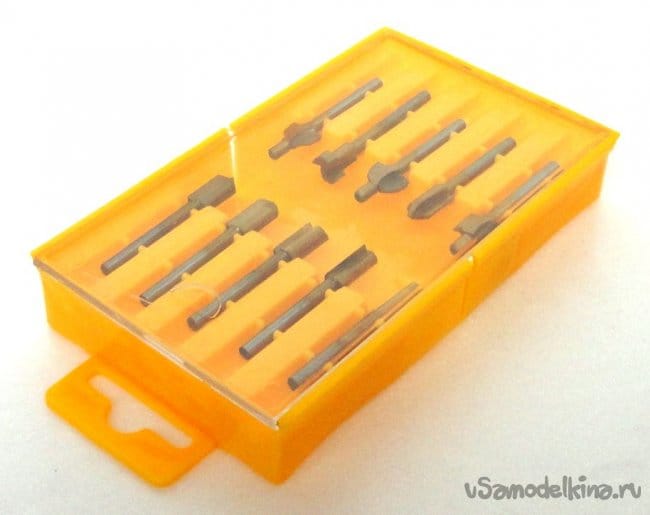 Для вырезания отверстия под фрезу (дорожки) и дальнейшего использования с МФИ «Dremel» были опробованы фрезы по дереву из китайского набора, приобретенного на «Алишке». Фрезы показали достаточно хорошую центровку и заточку.