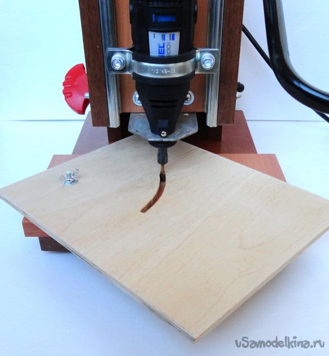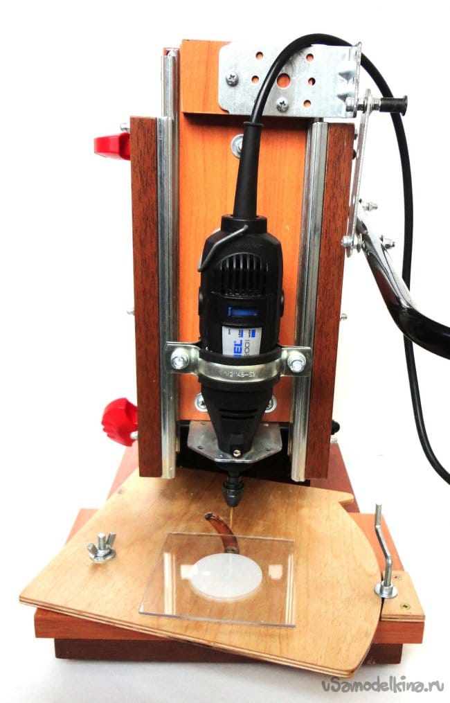 В данном варианте приспособление позволяет вырезать и обрабатывать детали допускающие наличие в их центре отверстия от 3мм.
