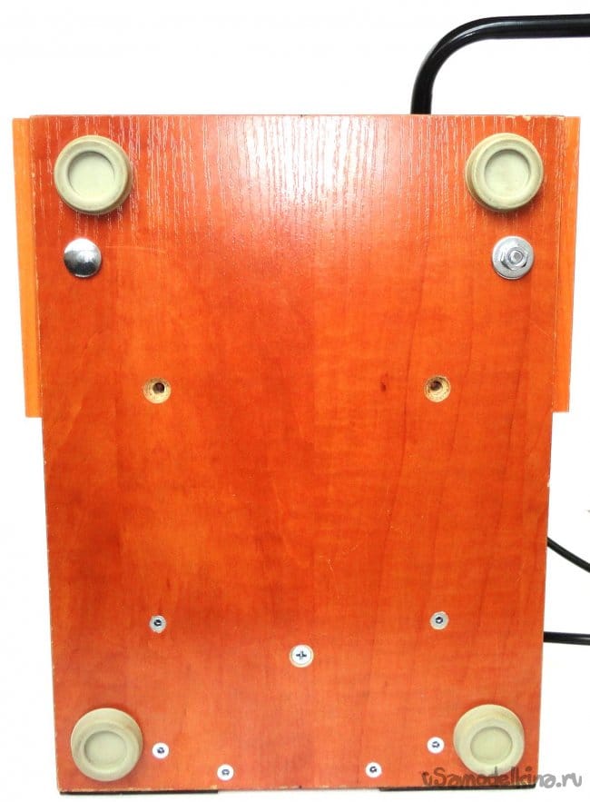 Опорный столик крепится к основанию станка винтом М6 и мебельным болтом М6 с квадратной юбкой. Через уже имевшиеся в основании станка отверстия. Упор фиксирующего винта крепится двумя шурупами диаметром 3мм. Отверстия в ЛДСП и детали из фанеры обработаны быстросохнущим лаком ХВ-784.