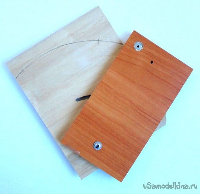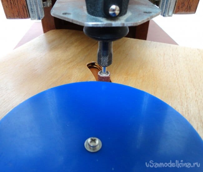 Поворотная платформа и упор фиксирующего винта изготовлены из куска фанеры размерами 245х200х6мм. Разметка проводилась сразу по месту установки.